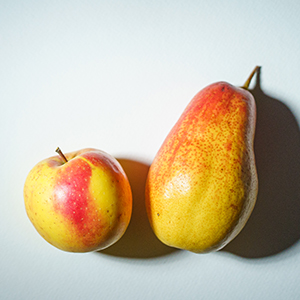 На рисунке 2 – фрукты освещены естественным рассеянным солнечным светом, на рисунке 3 – профессиональным световым прибором для фото- и видеосъёмки, а на рисунке 4 – простым фонариком. При включении этого фонарика кажется, что он светит белым светом, но сравнивая его с действительно белым профессиональным светильником, заметен едва уловимый зеленоватый оттенок, что более отчётливо проявилось на фотографии.